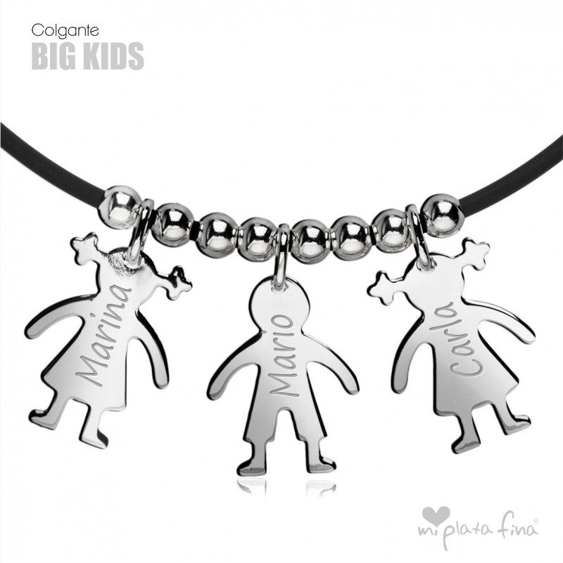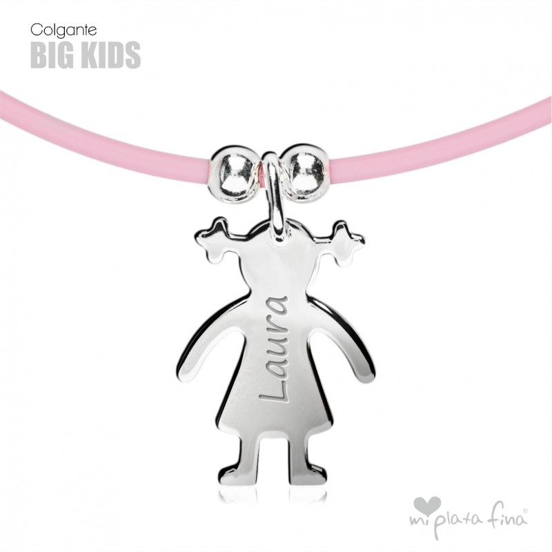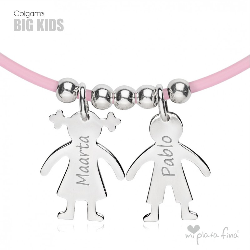 Necklace with silver Girl or Boy shape of 15 mm + rubber cord chain of 45cm.