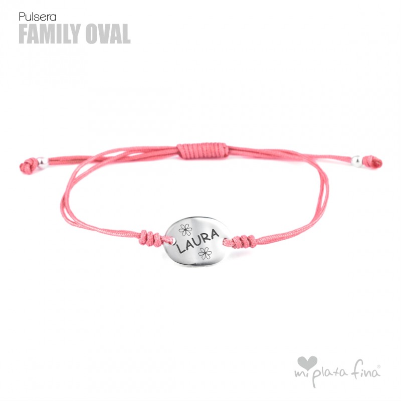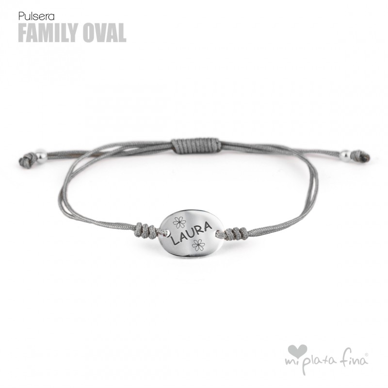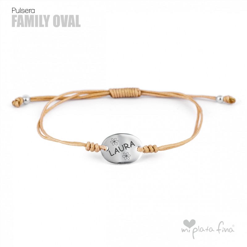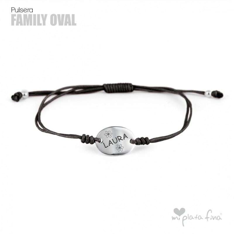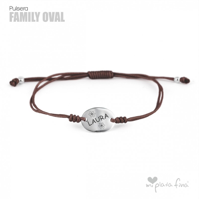Bracelet with Silver Oval shape of 15x10mm and macrame's lace which fits to any size.
