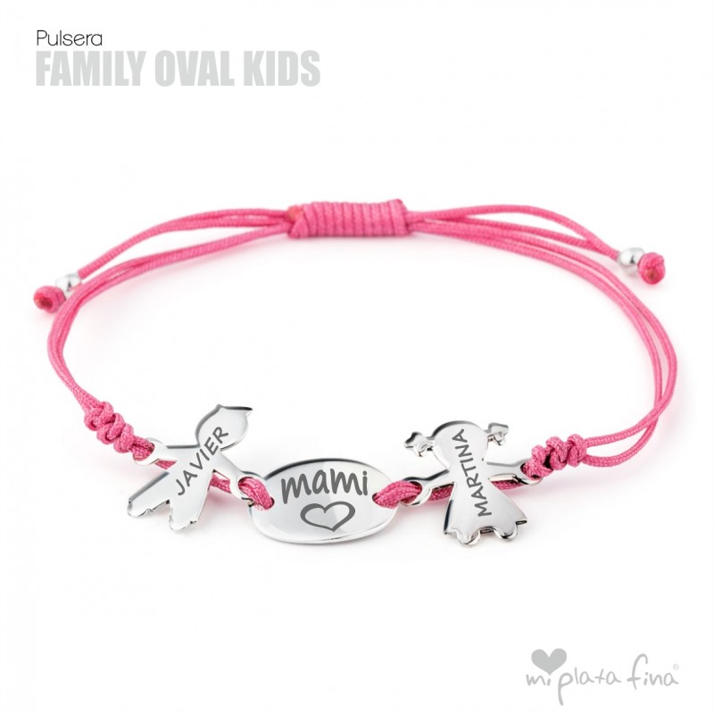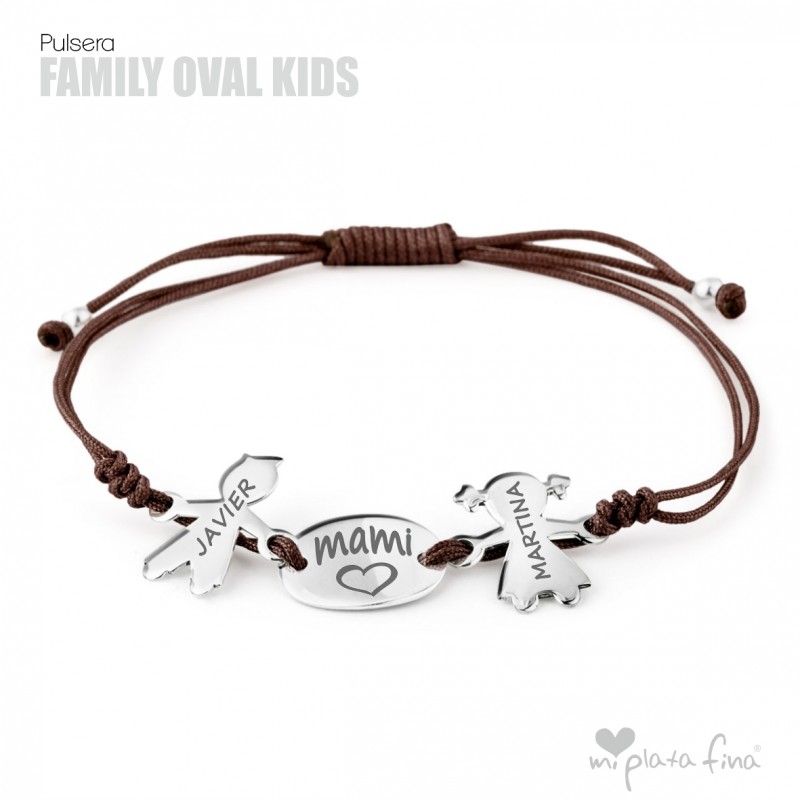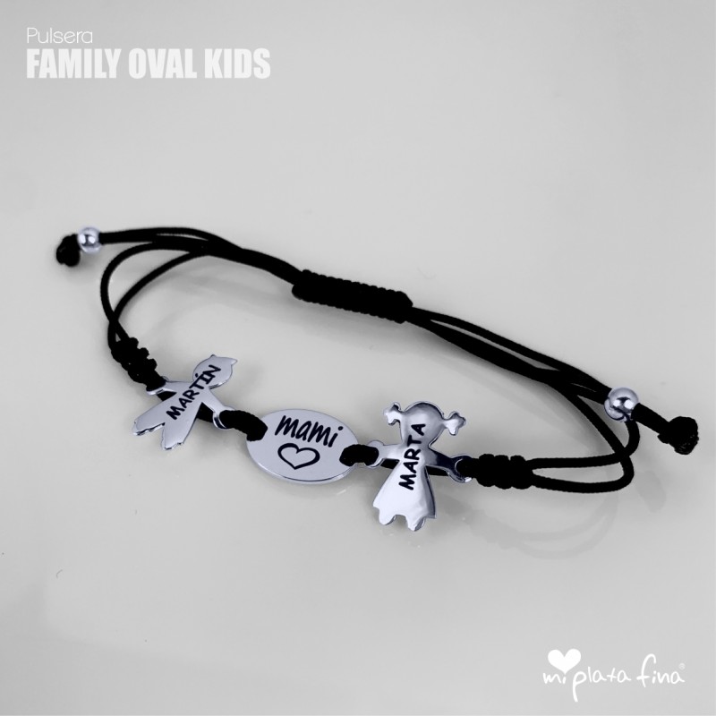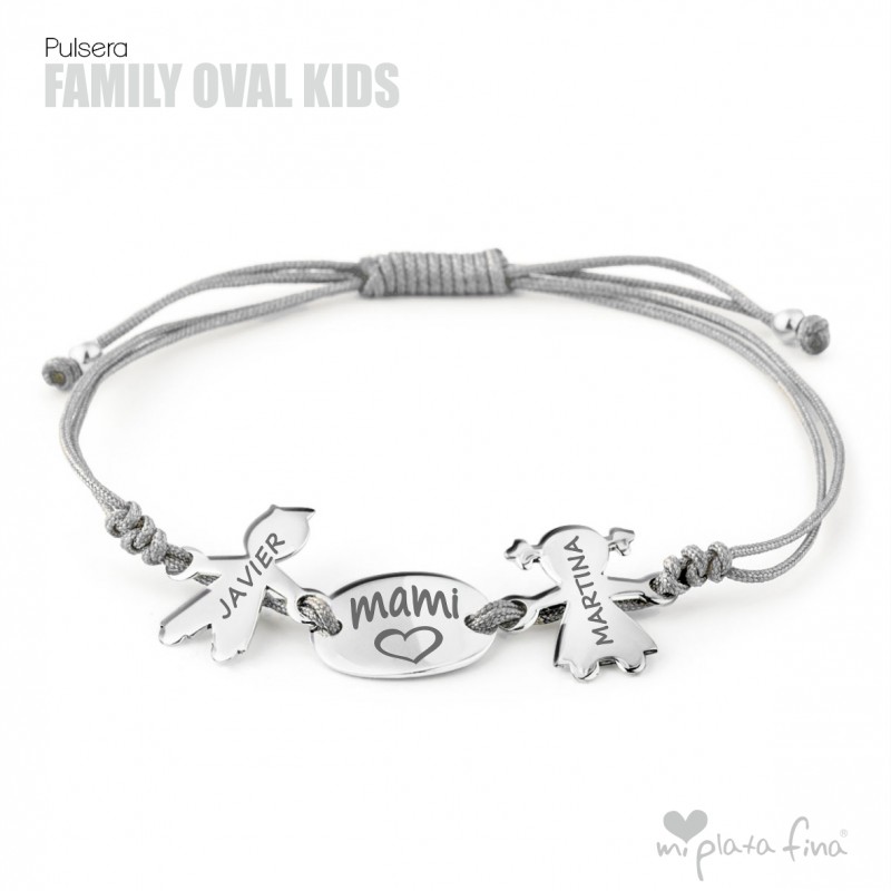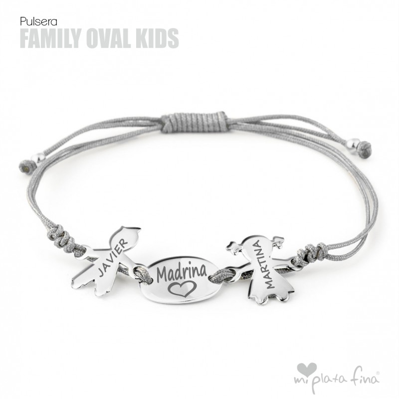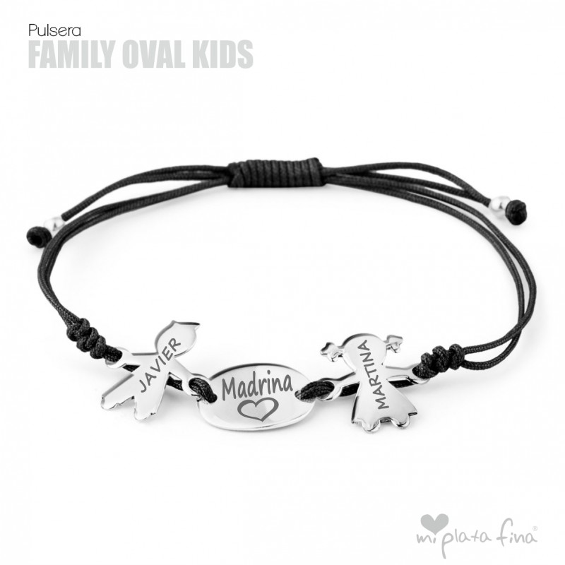 Bracelet with silver Girl or Boy shape of 15 mm + silver oval plate of 15x10mm and macrame's cord which fits to any size.