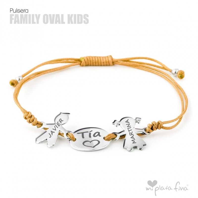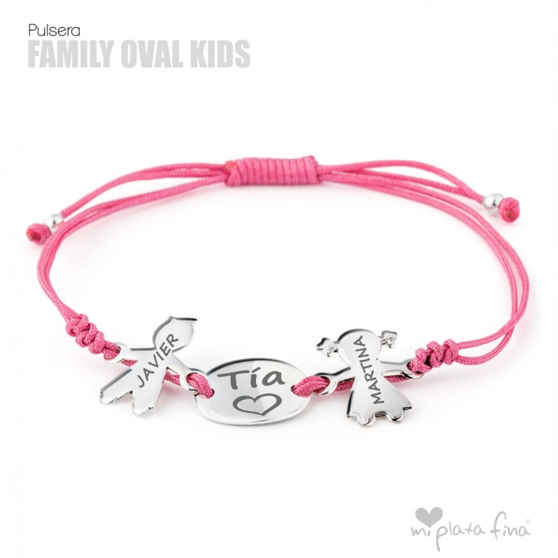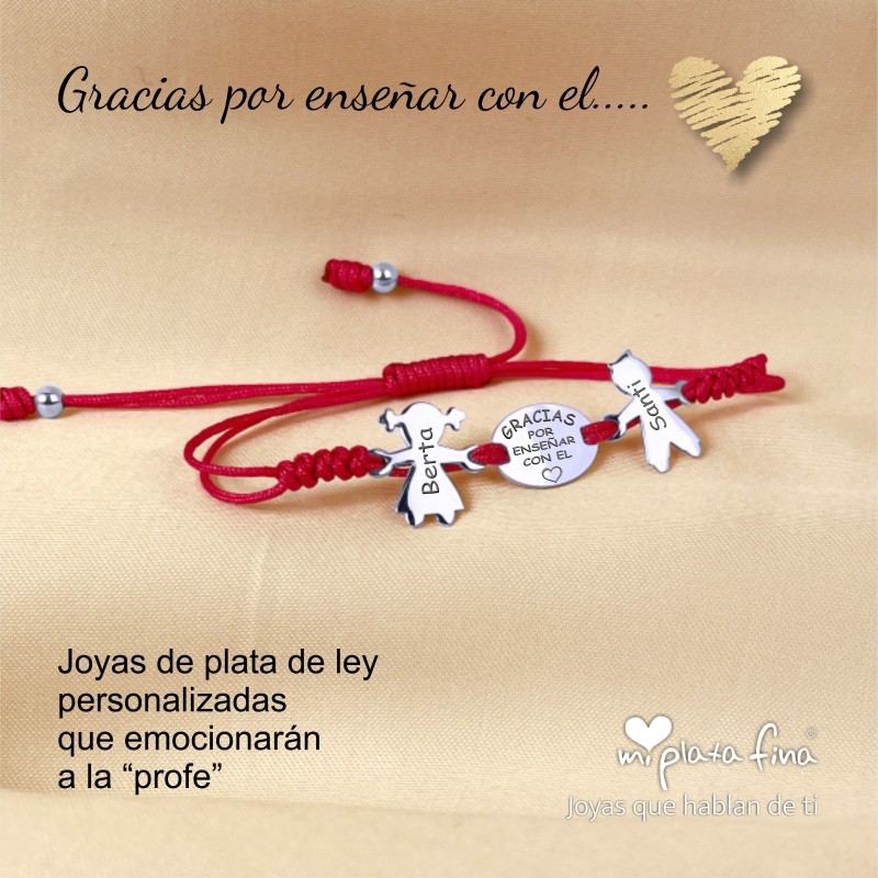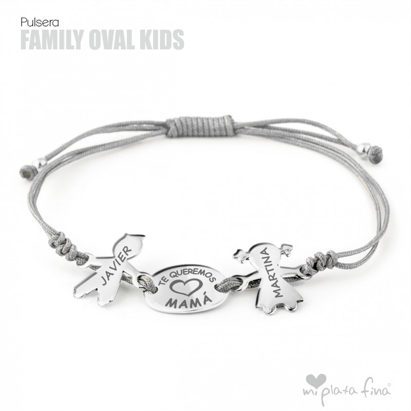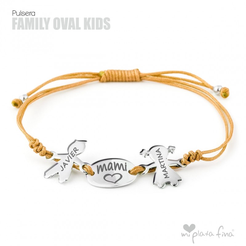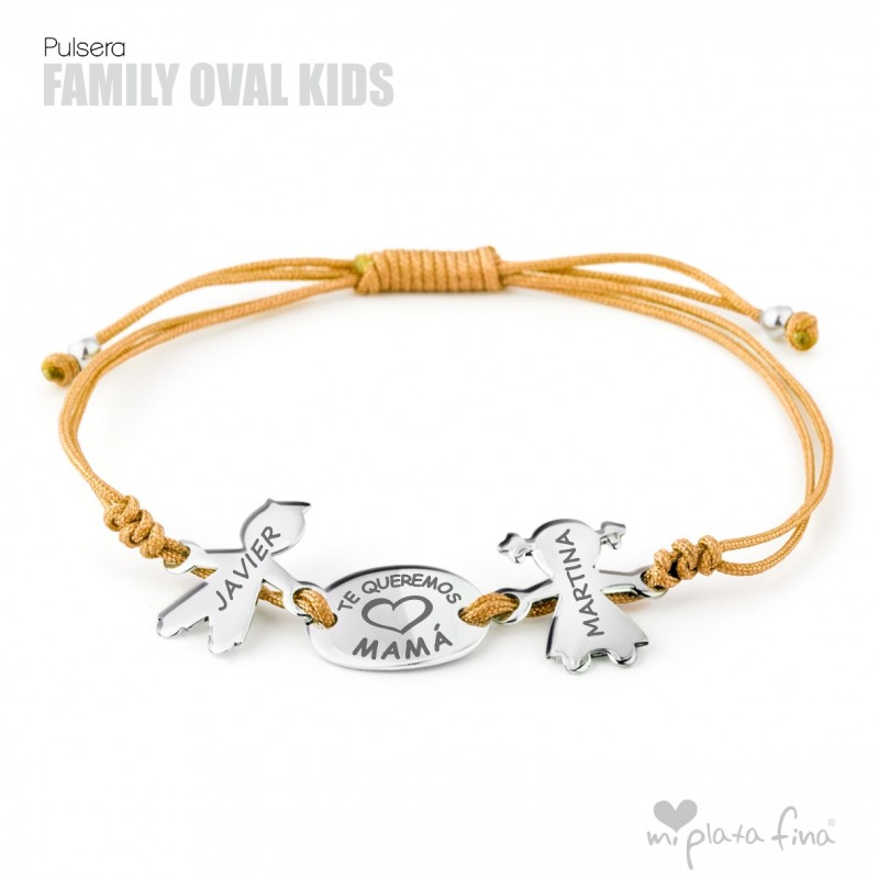 Bracelet with silver Girl or Boy shape of 15 mm + silver oval plate of 15x10mm and macrame's cord which fits to any size.