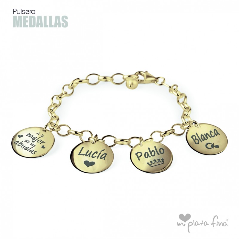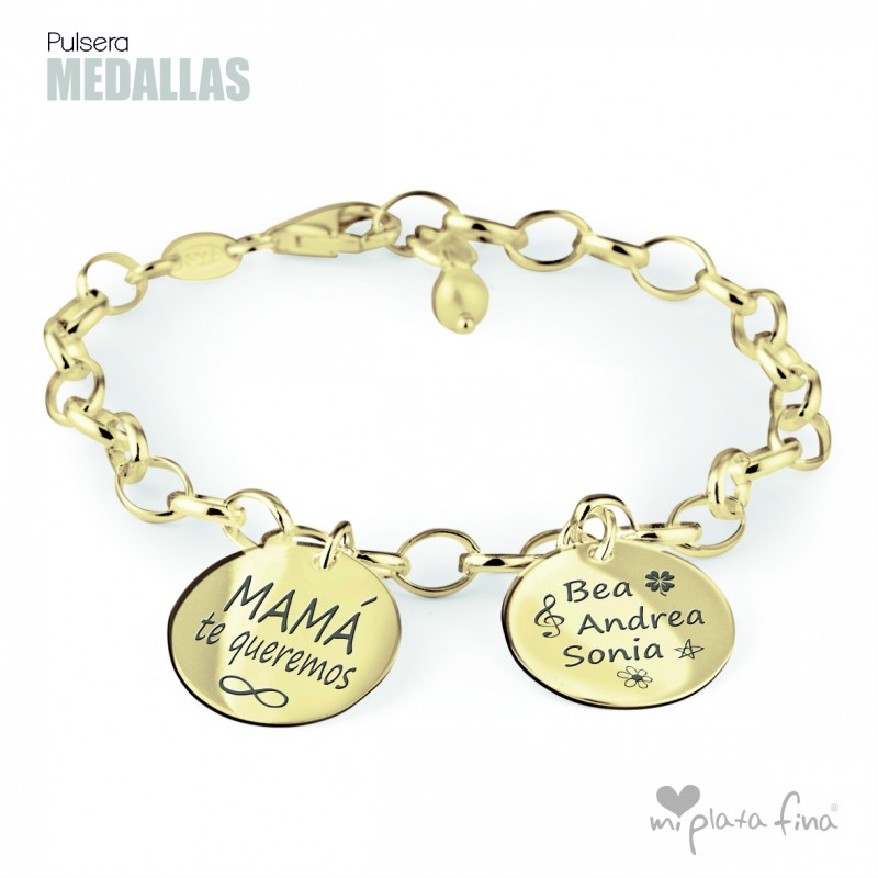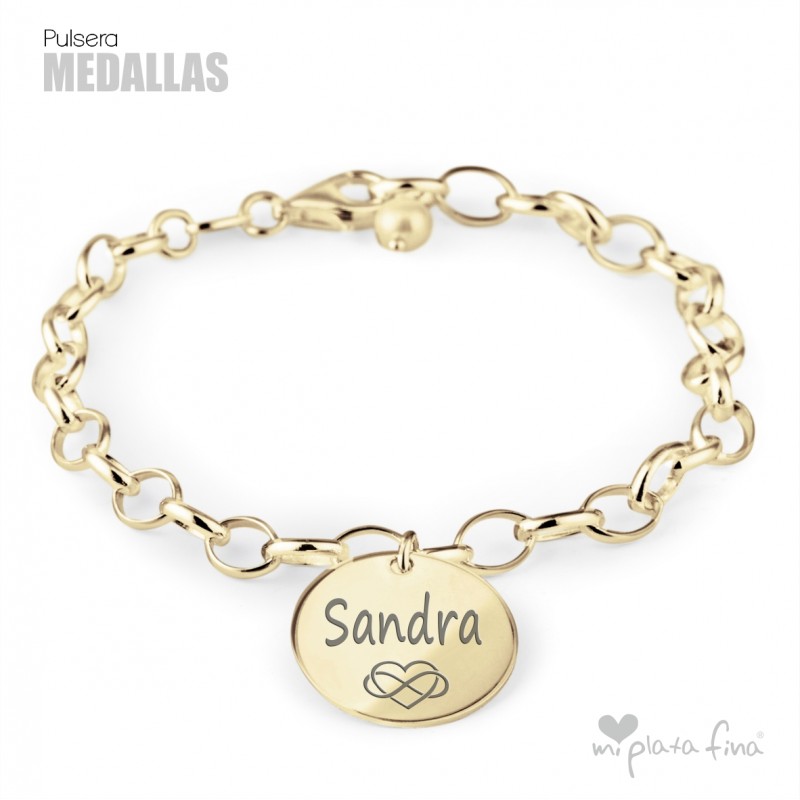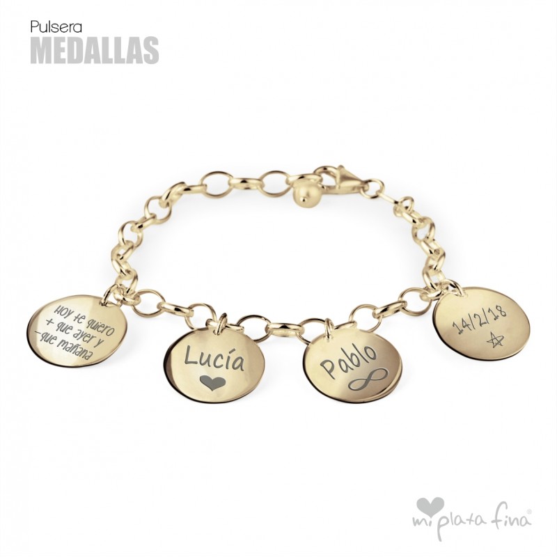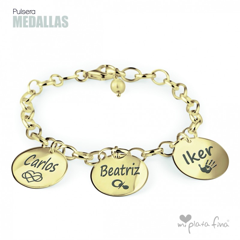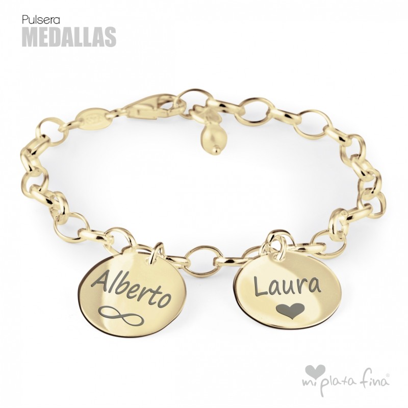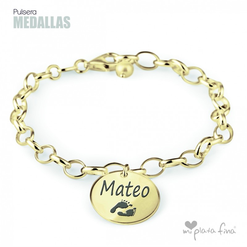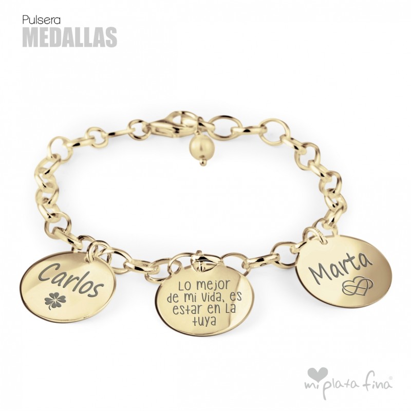 Bracelet with silver Medals of 17mm and chain of 18cm, all in Silver 18K Gold Plated.