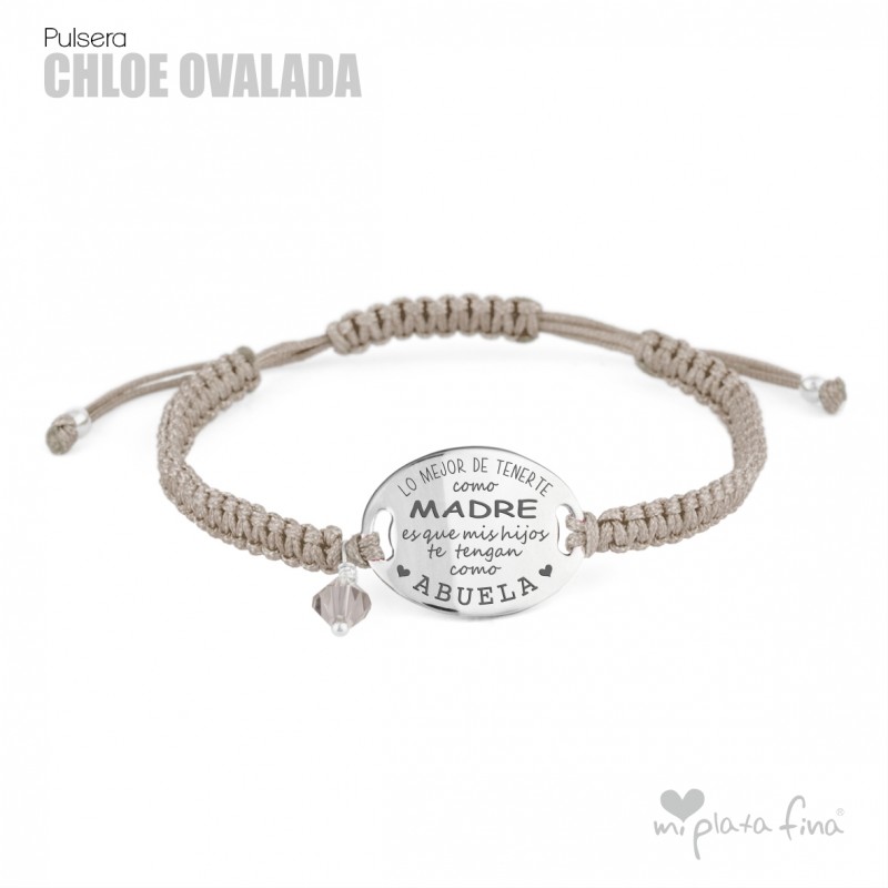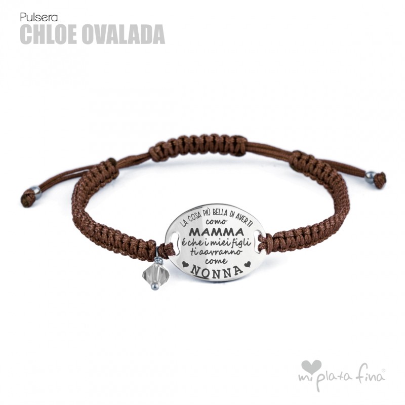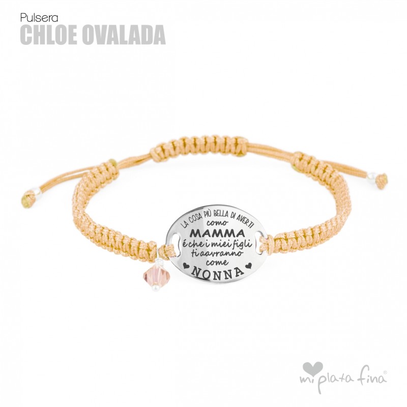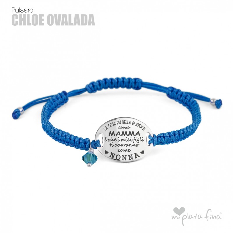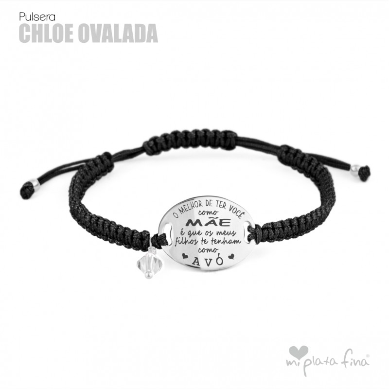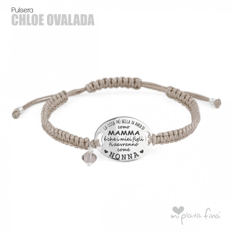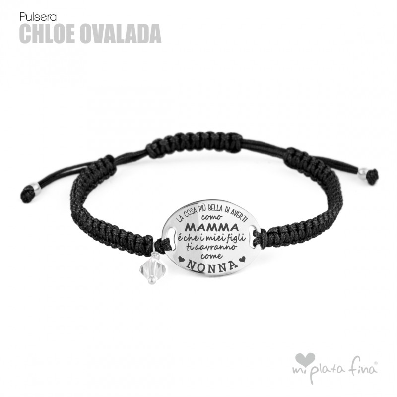 Bracelet silver Oval of 20mm with macrame's lace and sliding knot fastener which fits at any size.