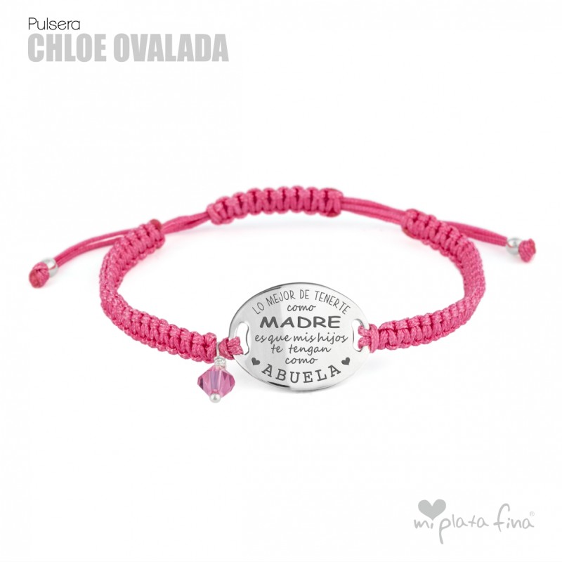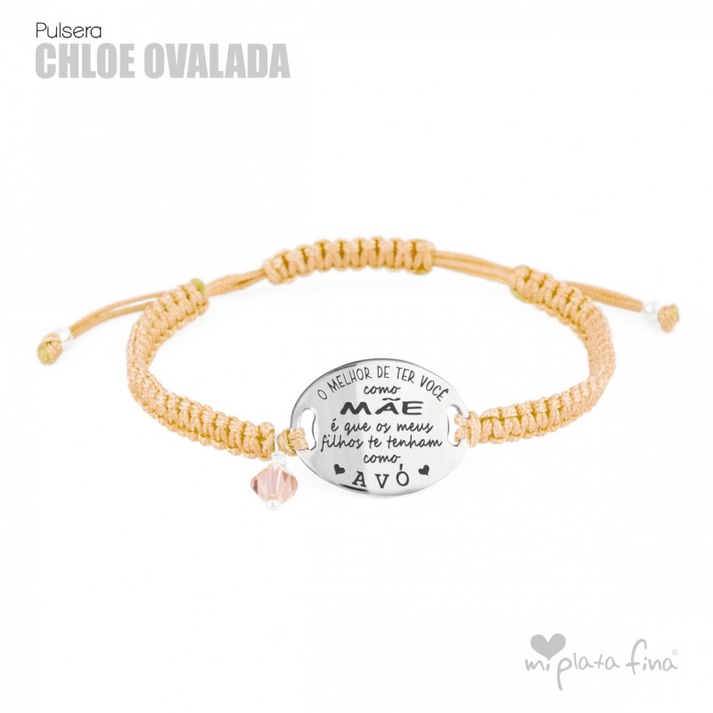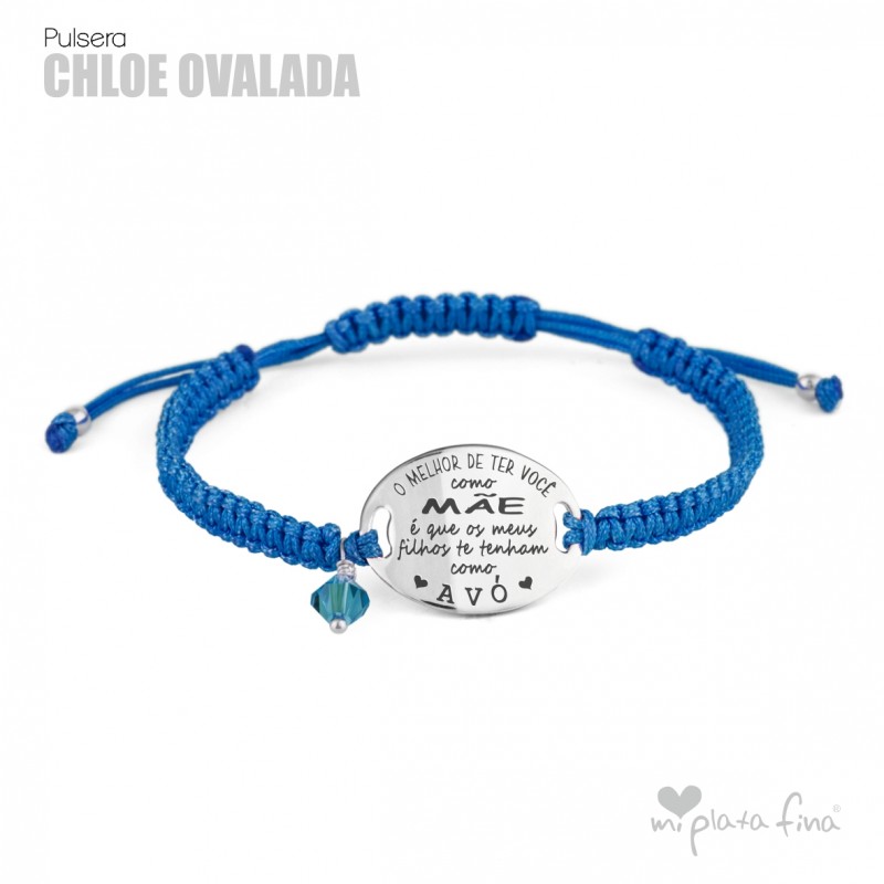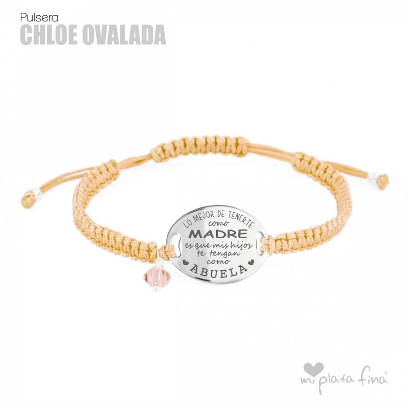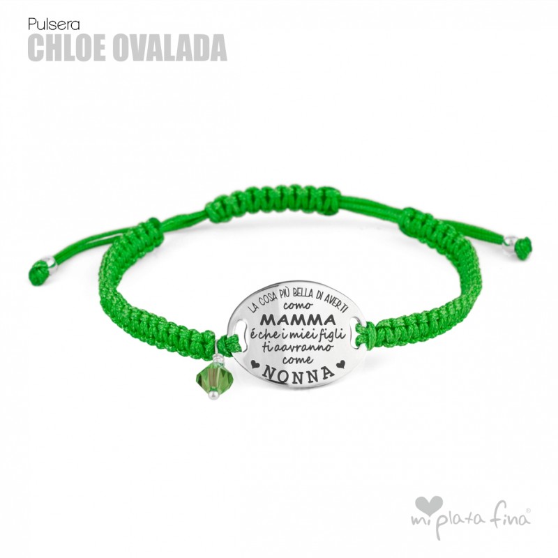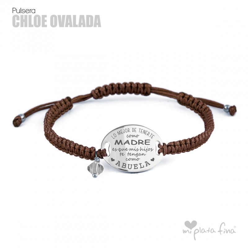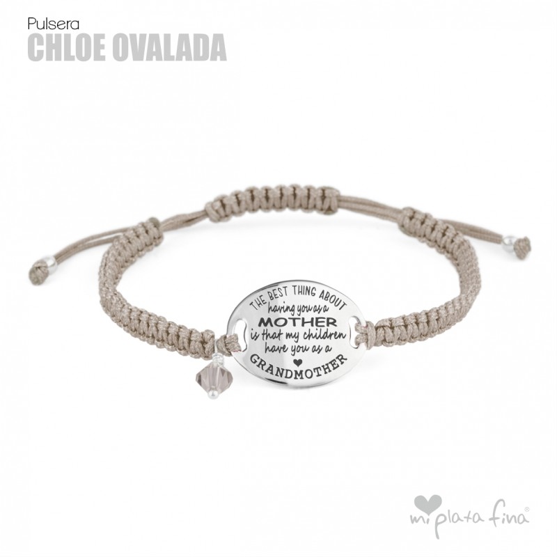 Bracelet silver Oval of 20mm with macrame's lace and sliding knot fastener which fits at any size.