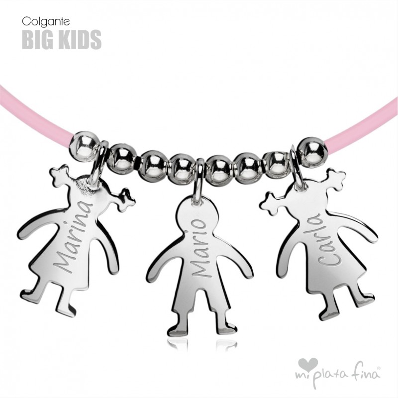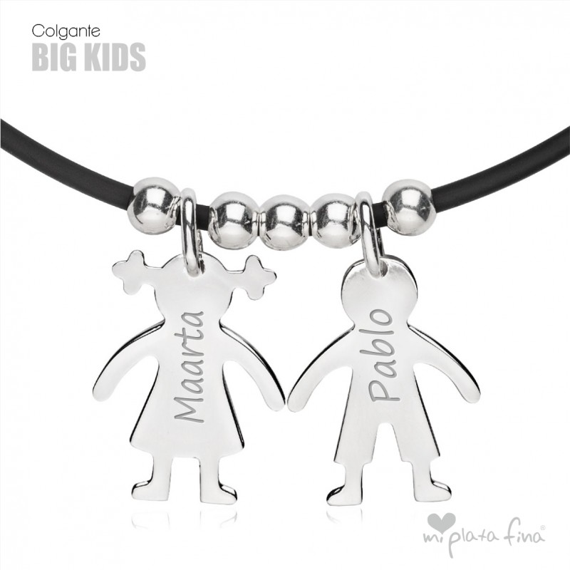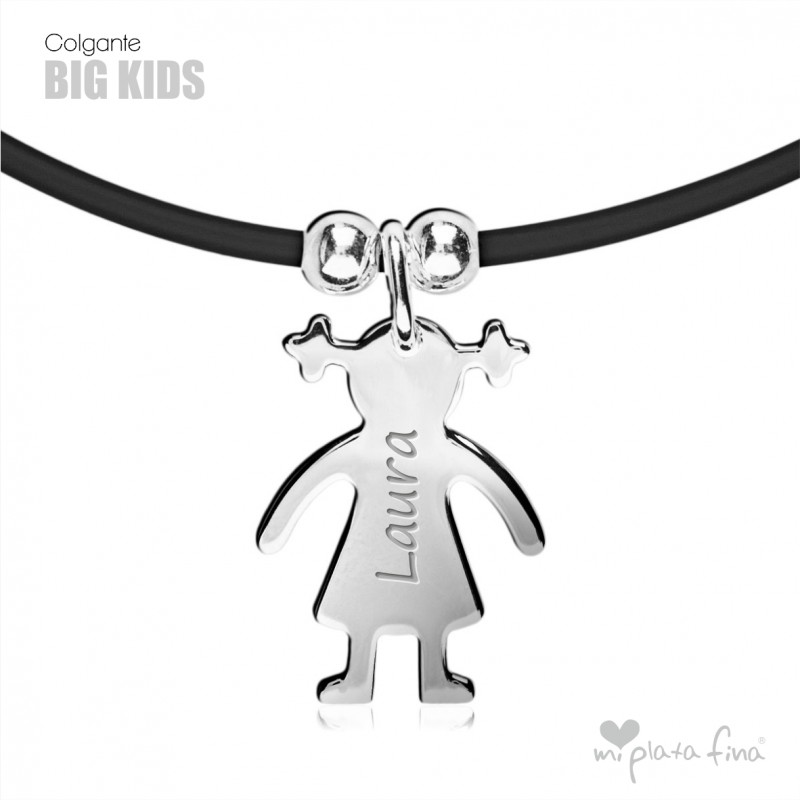 Necklace with silver Girl or Boy shape of 15 mm + rubber cord chain of 45cm.