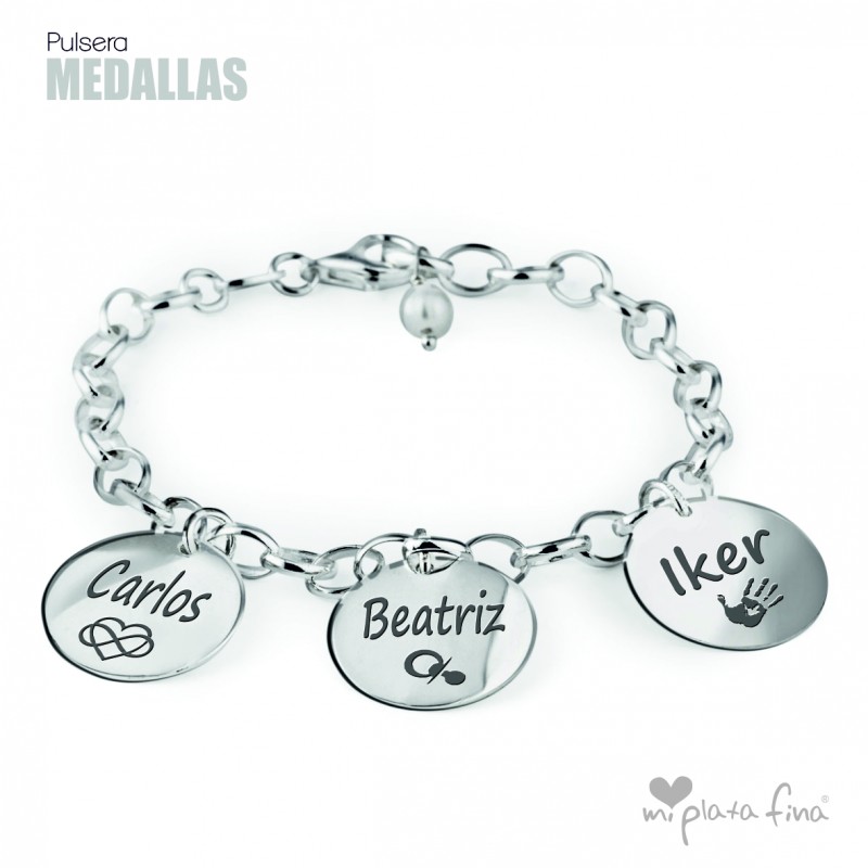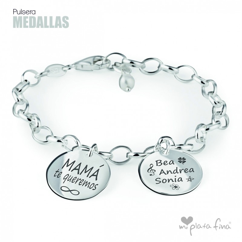 Bracelet with silver Medals of 17mm and silver chain of 18cm, perfect as gift for this Mother's Day.