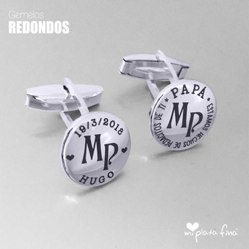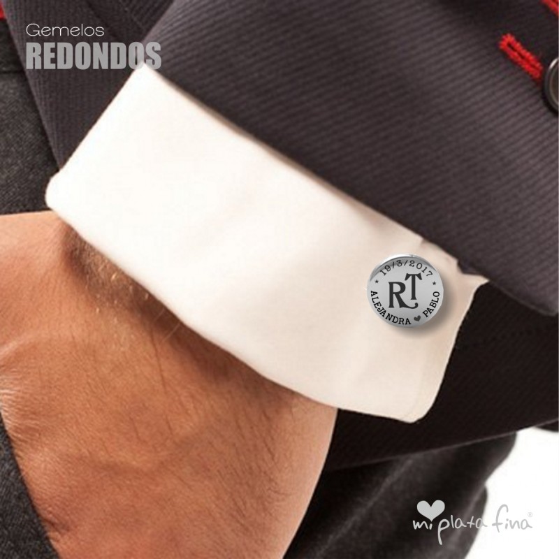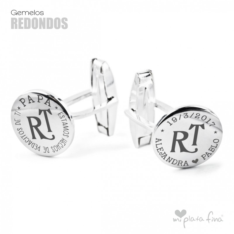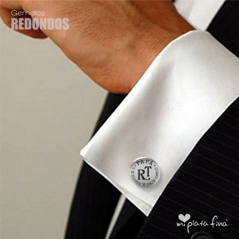 Gemelos de forma redonda en Plata de Ley de medidas 15mm con cierre en forma de "T" de sistema oscilante.